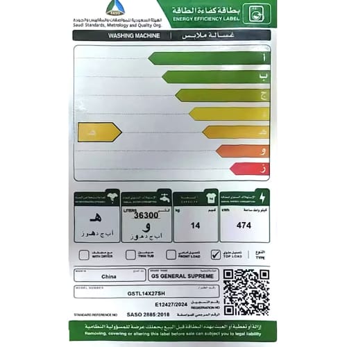 غسالة جنرال سوبريم علوية 14 كيلو – فضي :