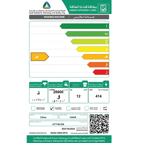 غسالة حوضين هاس 12 كيلو – ابيض |