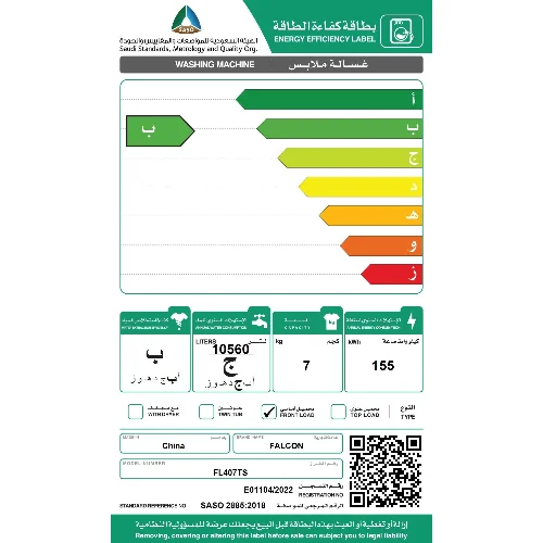 غسالة ملابس فتحة امامية 7 كيلو فالكون 16 برنامج – أبيض