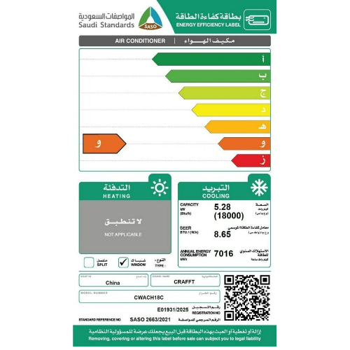 مكيف كرافت شباك 18 الف وحدة – بارد |